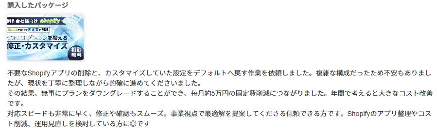 結果として、Shopifyのプラン自体もダウングレードに成功し、月額約5万円(年間約60万円)のコストカットを実現した事例をご紹介します。